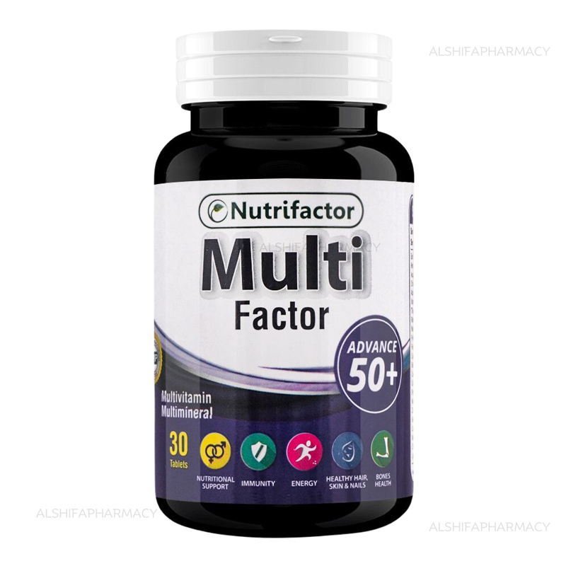 Multifactor 50+ is a specially formulated multivitamin and mineral supplement designed to meet the unique nutritional needs of adults aged 50 and above. As your body changes, so do its nutritional requirements. This comprehensive formula provides targeted support for energy, heart health, bone strength, and immune function, helping to fill dietary gaps and promote overall vitality during these years. With one easy-to-swallow tablet daily, you can proactively support your well-being and stay active.